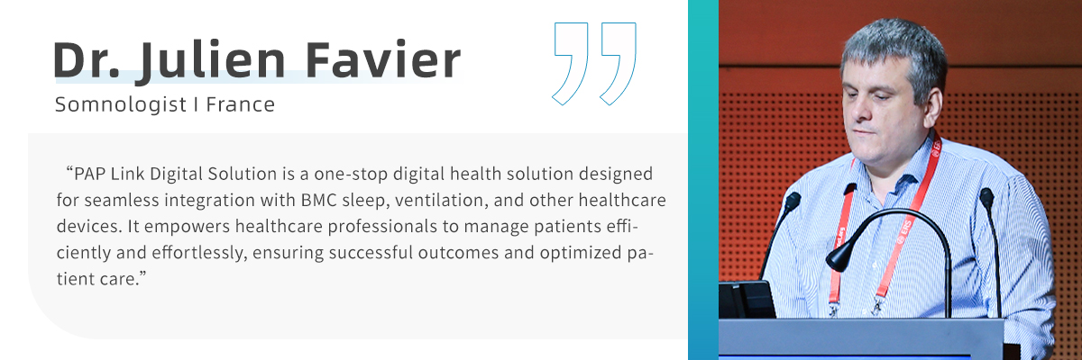 In this context, BMC hosted renowned experts such as Dr. Julien Favier, Dr. Bernhard Baumgartner, and biomedical engineer Ludovic Abuaf, who presented on the hot topic of How can “G3 CPAP/BPAP and PAP Link Digital Health Solution Enhance Patient Outcomes.”